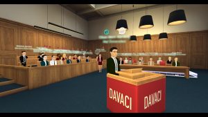 Kurgusal dava günü, davalı ve davacı takımlar sanal duruşma salonunda bir araya geldi. Öğrencilerin, jüri üyelerinin, gözlemcilerin ve seyircilerin kendilerini bir avatar ile temsil ettiği duruşmalar ile gerçek bir davaya en yakın kurgusal duruşma ortamı oluşturuldu.
